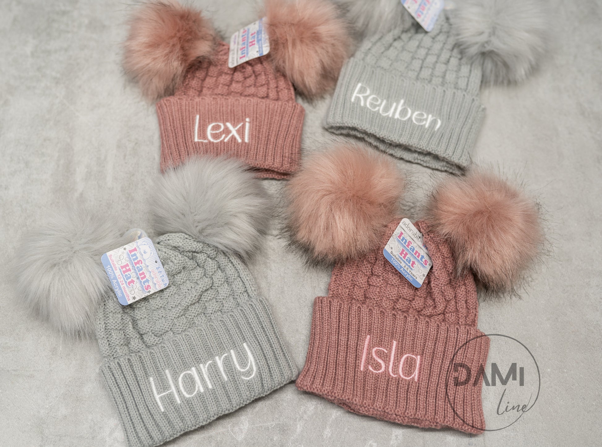 Personalised soft knitted PINK baby girl blanket with sherpa lining