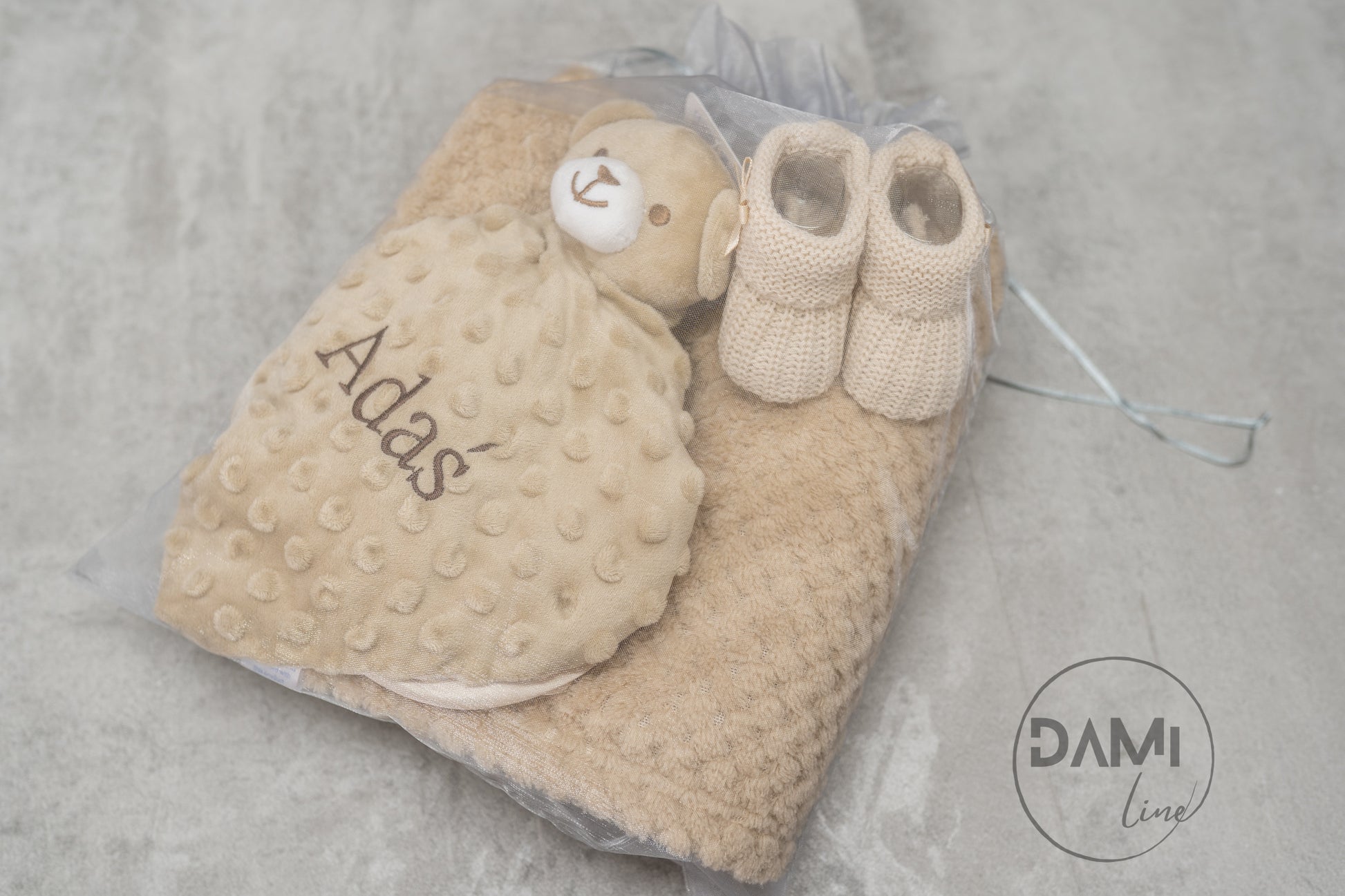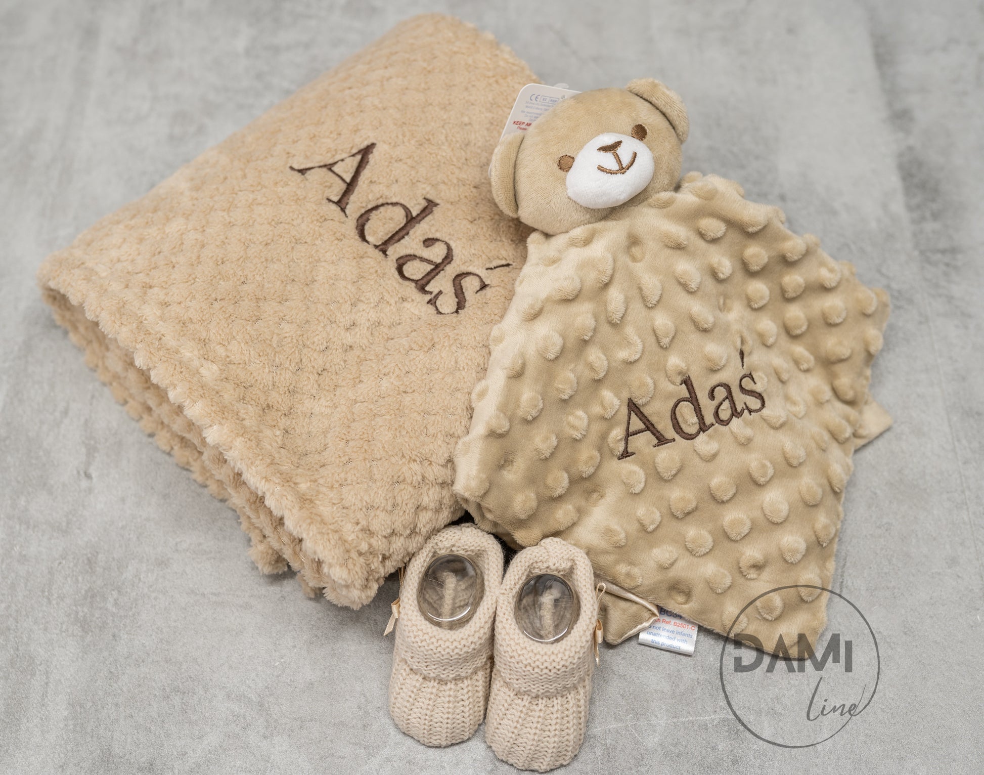 Personalised baby blanket, bear comforter and booties gift set for baby girl or boy | Baby gift set in box